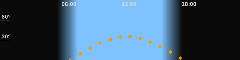 | Höchster Stand (Kulmination) | 12:40 Uhr (h = 35,4°) |