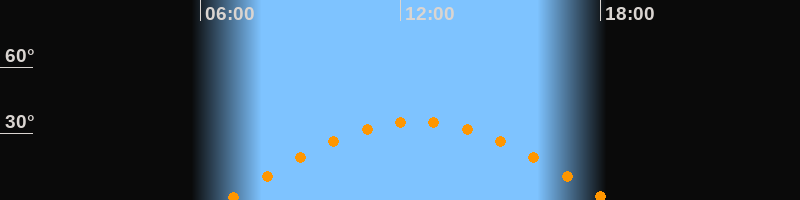 | Höchster Stand (Kulmination) | 12:31 Uhr (h = 35,4°) |