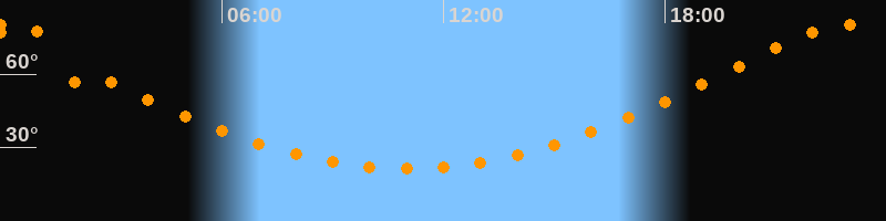 Höchster Stand (Kulmination)23:01 Uhr (h = 80,1°)