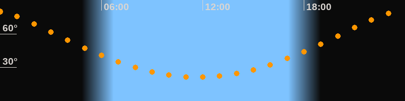 Höchster Stand (Kulmination)23:42 Uhr (h = 80,1°)