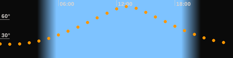 Höchster Stand (Kulmination)13:05 Uhr (h = 80,1°)