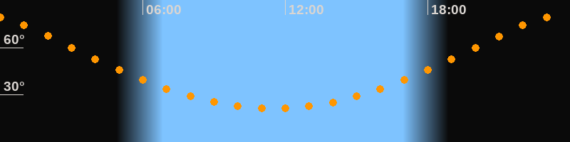 Höchster Stand (Kulmination)23:28 Uhr (h = 80,1°)