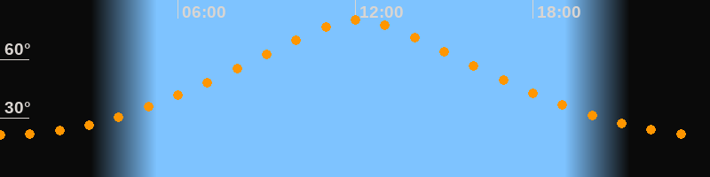 Höchster Stand (Kulmination)12:05 Uhr (h = 80,1°)