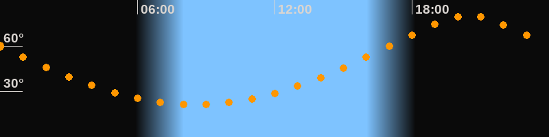 Höchster Stand (Kulmination)20:29 Uhr (h = 80,1°)