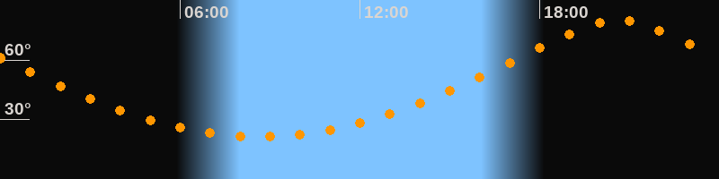 Höchster Stand (Kulmination)20:38 Uhr (h = 80,1°)