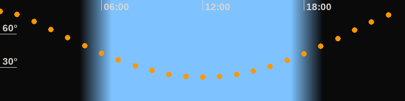 Höchster Stand (Kulmination)23:59 Uhr (h = 80,1°)