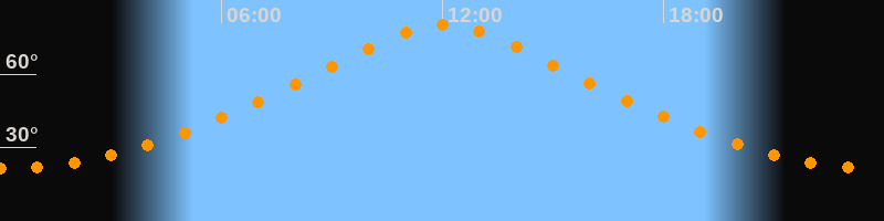 Höchster Stand (Kulmination)12:02 Uhr (h = 80,1°)