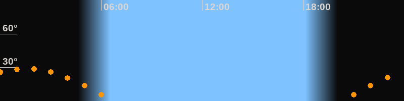 | Höchster Stand (Kulmination) | 01:31 Uhr (h = 28,9°) |
