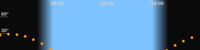 | Höchster Stand (Kulmination) | 01:13 Uhr (h = 28,9°) |