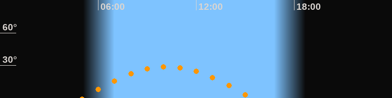 | Höchster Stand (Kulmination) | 10:13 Uhr (h = 28,9°) |