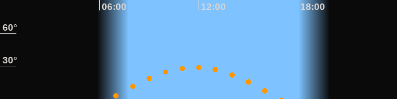 | Höchster Stand (Kulmination) | 11:45 Uhr (h = 28,9°) |