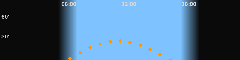 | Höchster Stand (Kulmination) | 11:48 Uhr (h = 28,9°) |