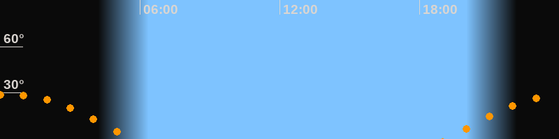 | Höchster Stand (Kulmination) | 00:20 Uhr (h = 28,9°) |