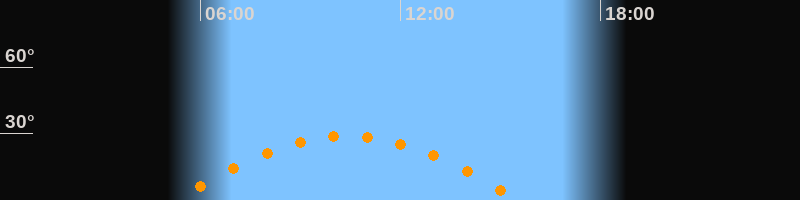 | Höchster Stand (Kulmination) | 10:23 Uhr (h = 28,9°) |