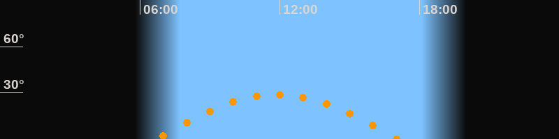 | Höchster Stand (Kulmination) | 11:53 Uhr (h = 28,9°) |