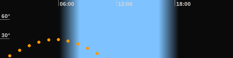 | Höchster Stand (Kulmination) | 05:42 Uhr (h = 28,9°) |