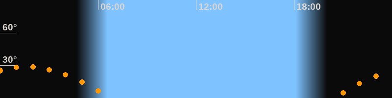 | Höchster Stand (Kulmination) | 01:36 Uhr (h = 28,9°) |