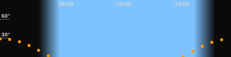 | Höchster Stand (Kulmination) | 00:03 Uhr (h = 28,9°) |