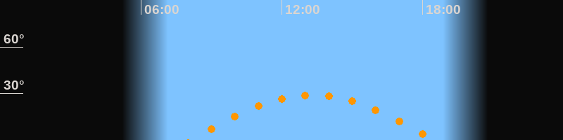 | Höchster Stand (Kulmination) | 13:18 Uhr (h = 28,9°) |