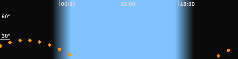 | Höchster Stand (Kulmination) | 02:36 Uhr (h = 28,9°) |