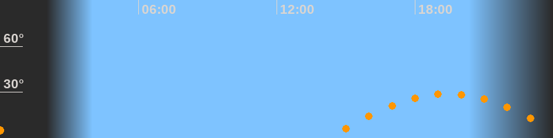 | Höchster Stand (Kulmination) | 19:25 Uhr (h = 28,9°) |