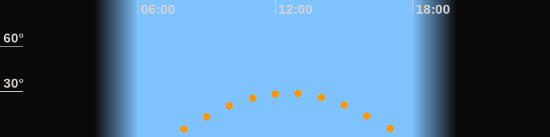 | Höchster Stand (Kulmination) | 12:32 Uhr (h = 28,9°) |
