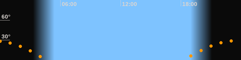 | Aufgang | 18:14 Uhr im Osten (αAz = 105,8°) |