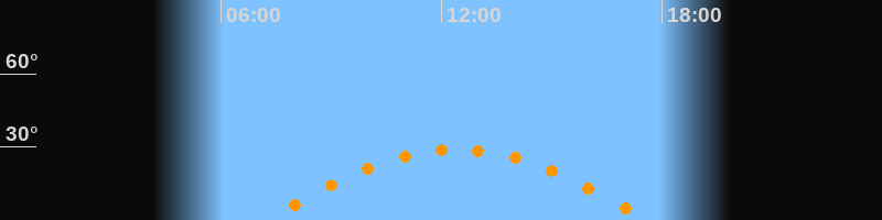 | Höchster Stand (Kulmination) | 12:25 Uhr (h = 28,9°) |