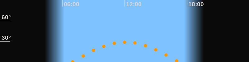 | Höchster Stand (Kulmination) | 12:04 Uhr (h = 28,9°) |