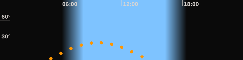 | Höchster Stand (Kulmination) | 09:39 Uhr (h = 26,3°) |
