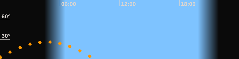 | Untergang | 09:35 Uhr im Westen (αAz = 250°) |