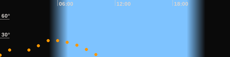 | Untergang | 10:31 Uhr im Westen (αAz = 250°) |