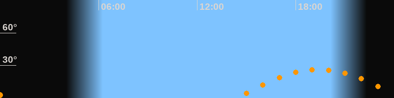 | Aufgang | 14:26 Uhr im Osten (αAz = 110°) |