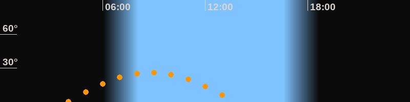 | Höchster Stand (Kulmination) | 08:50 Uhr (h = 26,3°) |