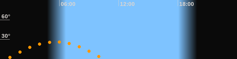 | Höchster Stand (Kulmination) | 05:35 Uhr (h = 26,3°) |