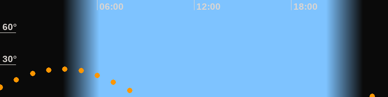 | Aufgang | 22:49 Uhr im Osten (αAz = 110°) |