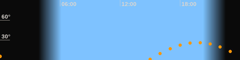 | Aufgang | 14:45 Uhr im Osten (αAz = 110°) |