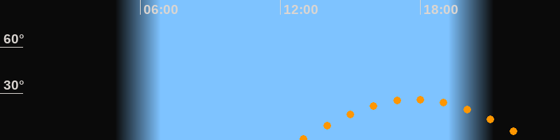 | Höchster Stand (Kulmination) | 17:46 Uhr (h = 26,3°) |