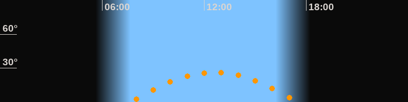 | Höchster Stand (Kulmination) | 12:34 Uhr (h = 26,3°) |
