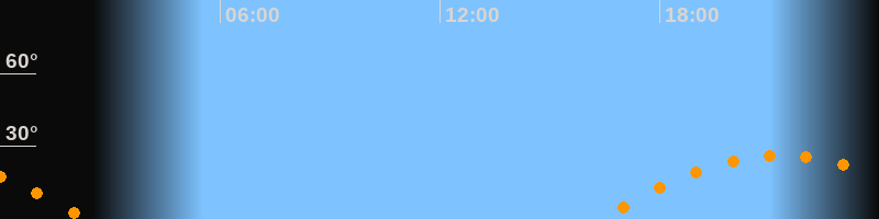 | Untergang | 02:21 Uhr im Westen (αAz = 250°) |