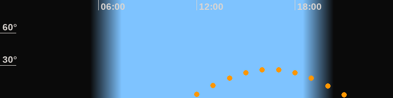 | Höchster Stand (Kulmination) | 16:28 Uhr (h = 26,3°) |