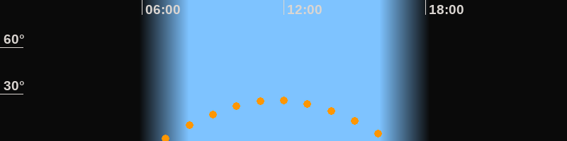 | Höchster Stand (Kulmination) | 11:40 Uhr (h = 26,3°) |