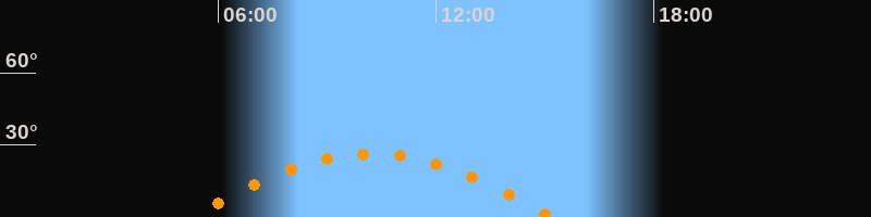 | Höchster Stand (Kulmination) | 10:14 Uhr (h = 26,3°) |