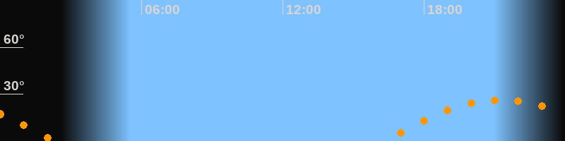 | Aufgang | 16:18 Uhr im Osten (αAz = 110°) |