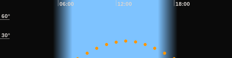 Höchster Stand (Kulmination)13:00 Uhr (h = 26,3°)