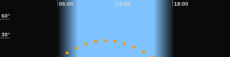 | Höchster Stand (Kulmination) | 11:06 Uhr (h = 26,3°) |