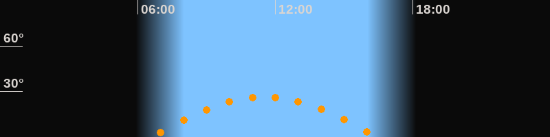 | Höchster Stand (Kulmination) | 11:31 Uhr (h = 26,3°) |