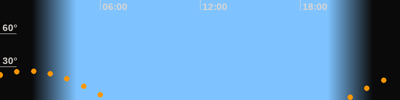 | Untergang | 06:37 Uhr im Westen (αAz = 250°) |