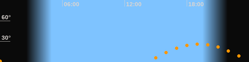 | Untergang | 00:08 Uhr im Westen (αAz = 250°) |