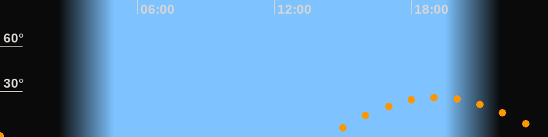| Aufgang | 14:10 Uhr im Osten (αAz = 110°) |
